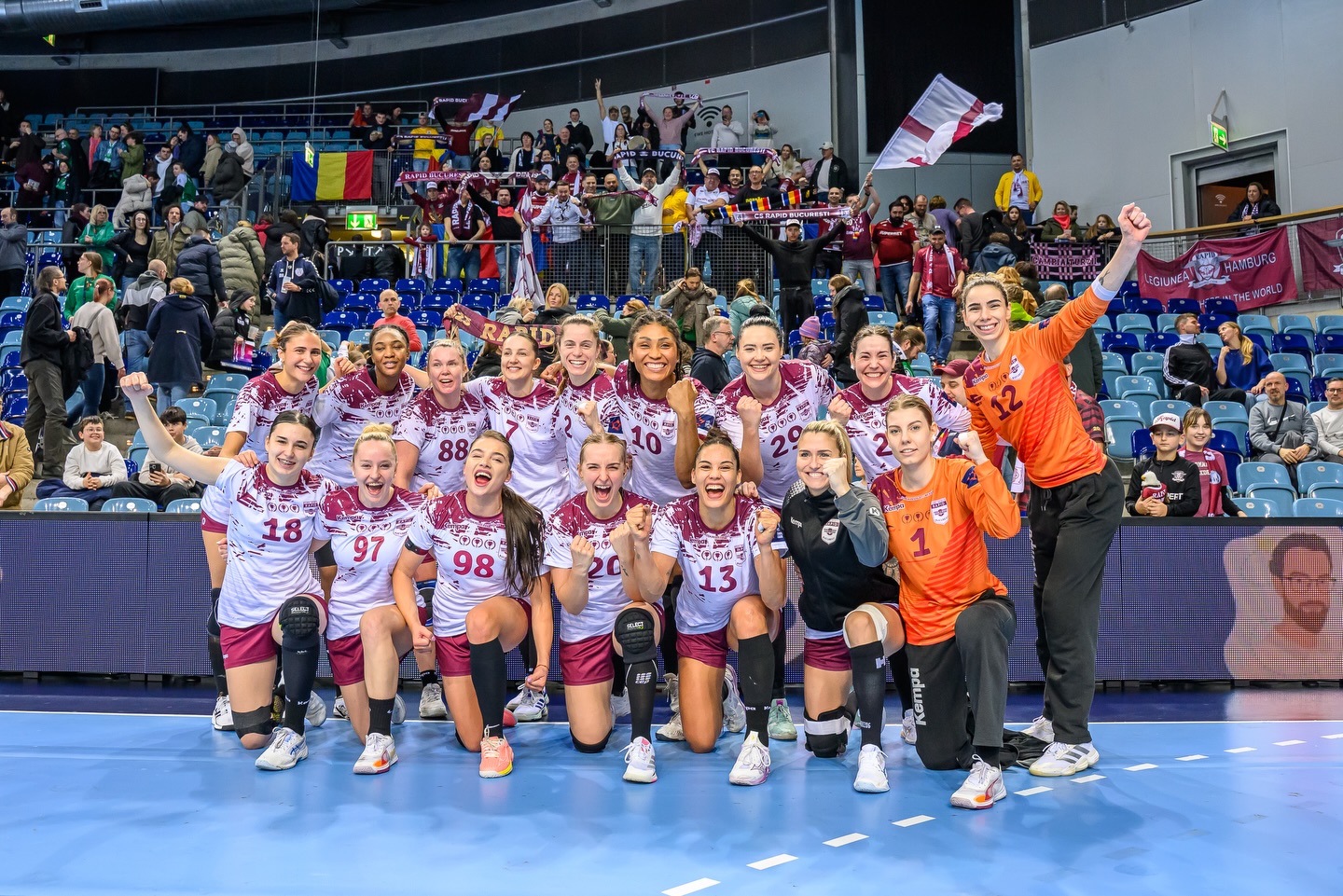 Foto: Rapid, după victoria cu Oldenburg, din 8 februarie / Sursa foto: Facebook Handbal Rapid București